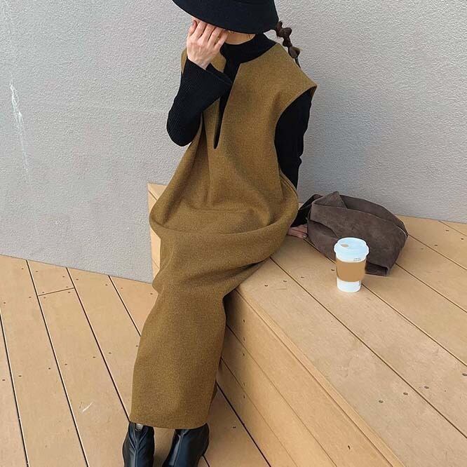 # エレガント オシャレ ノースリーブ ロングベスト ニット ワンピース