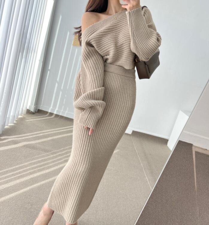 洗練されたスタイルを楽しむ、【国内発送】 ★お洒落セーター +スカート セット★ 4色 ★ このセットは、シンプルかつ上品なデザインが特徴で、日常のコーディネートにぴったりです。カジュアルからシックなシーンまで幅広くご利用いただけるアイテムで、スタイルと快適さを兼ね備え、あなたの魅力を引き立てます!