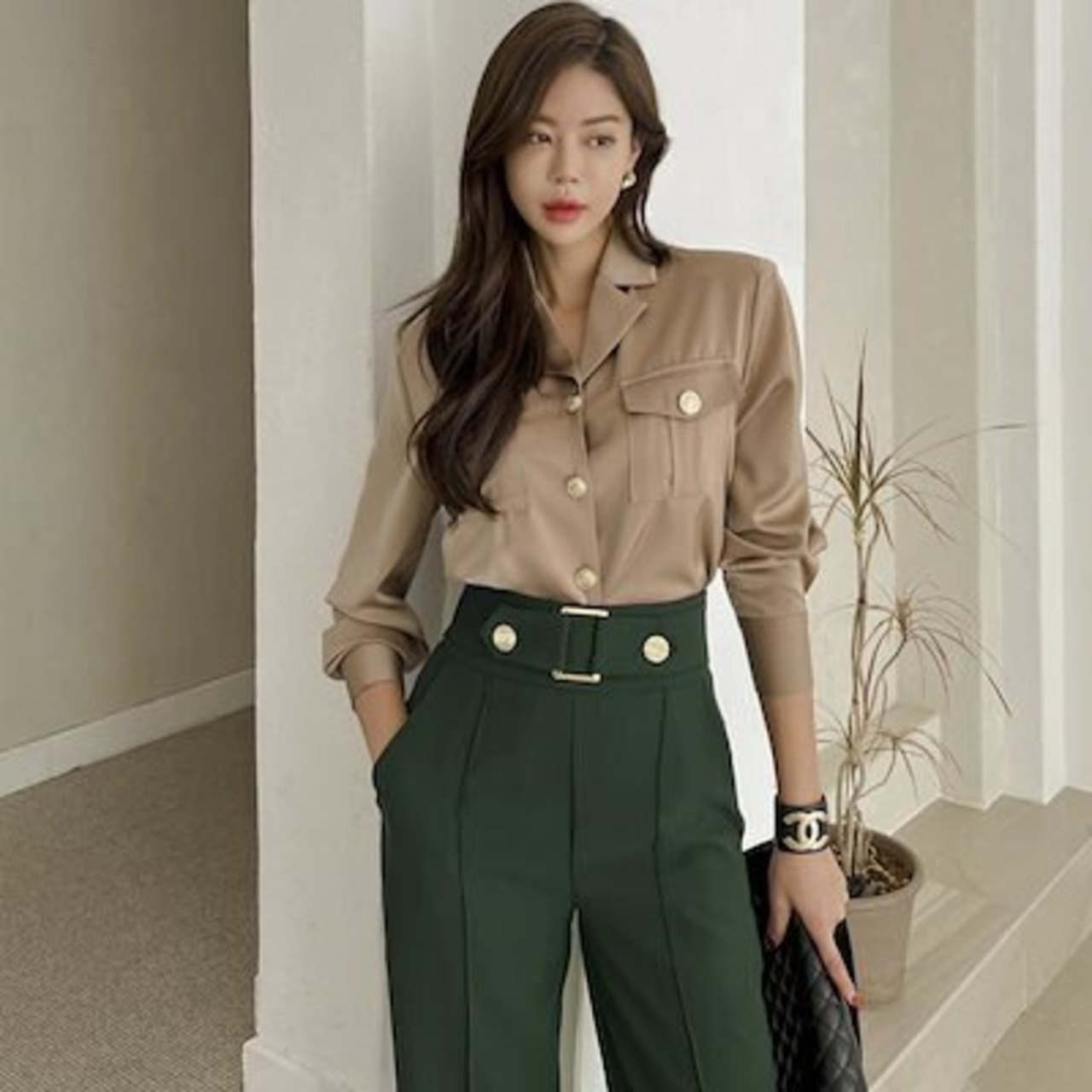 セットアップレディース スウェット上下セット プロスーツ 気質シャツ上着OLワイドウエストパンツ二セット サイズ: S M L XL