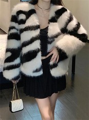 ゼブラ柄 毛皮コート おしゃれな 気質 毛羽立ちの上着 コート 2色 フリーサイズ