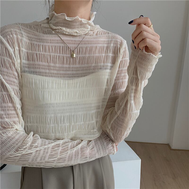 洗練されたスタイルを楽しむ、【国内発送】 ★トップス レディース 長袖 インナー ハイネック レース 1色 フリーサイズ★ この長袖ハイネックトップスは、エレガントなレースデザインと優れたフィット感が特長です。普段使いから特別なお出かけまで、幅広く活躍するアイテムです!