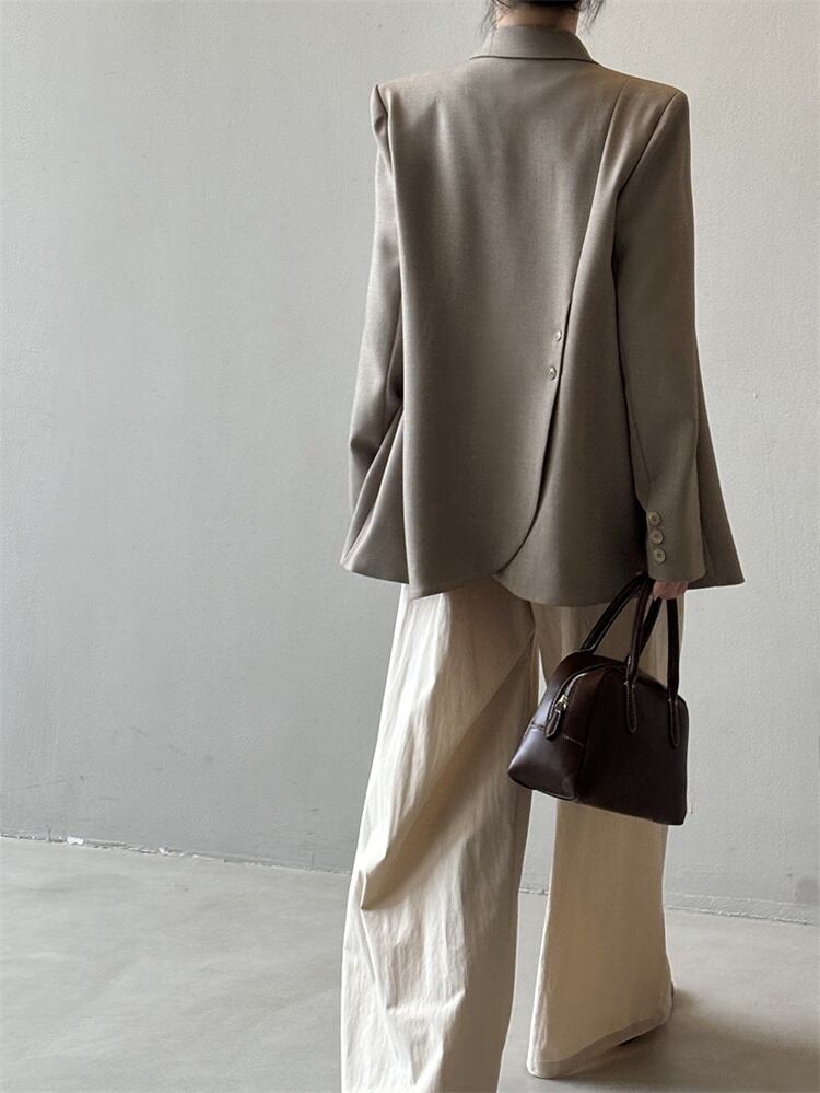 洗練されたスタイルを楽しむ、【国内発送】 ★ギャザリング コート スプリット スーツコート 2色 M~L★ このスーツコートは、トレンド感あふれるギャザーとスプリットデザインが特徴で、ビジネスシーンやカジュアルなお出かけでもスタイリッシュに活躍します!エレガントでありながら、日常使いにもぴったりな一着です。