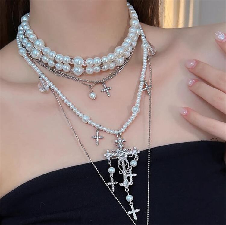 十字架ネックレス 真珠ネックレス 鎖骨鎖 ネックレス アクセサリー 首鎖